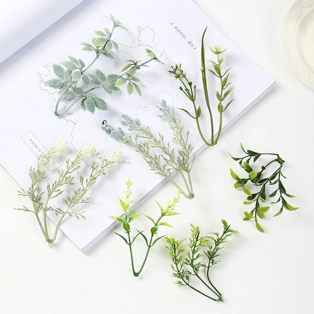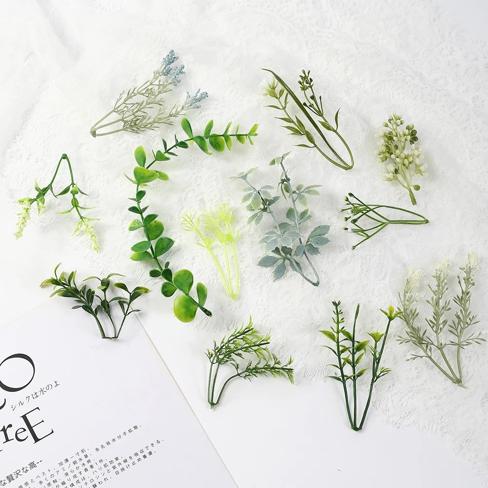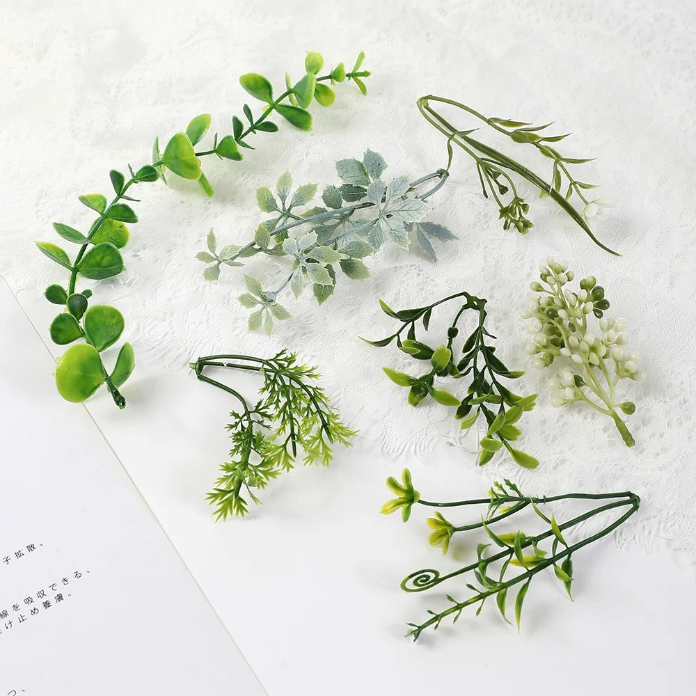 10Pcs Green Artificial Ferns Leaf Fake Plants Eucalyptus Flower Wall Vines